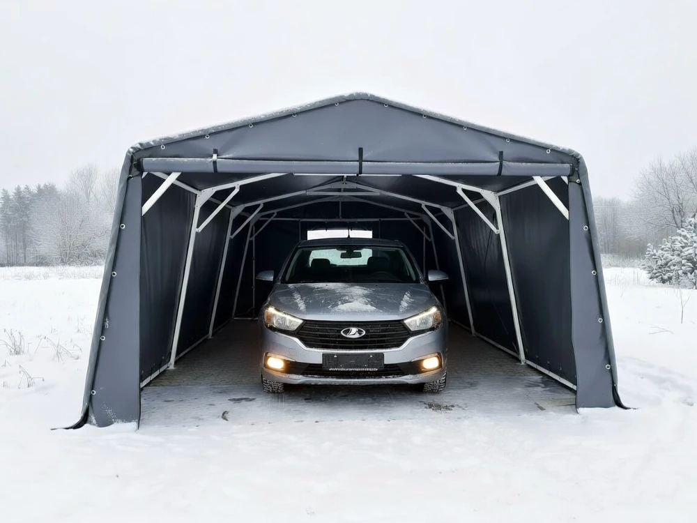 Каркасно-тентовый гараж 3,9х6,1х2,4 м — это готовое решение для хранения автомобиля, техники и оборудования. Оптимален, если нужен надёжный гараж без индивидуального проектирования и лишних затрат.